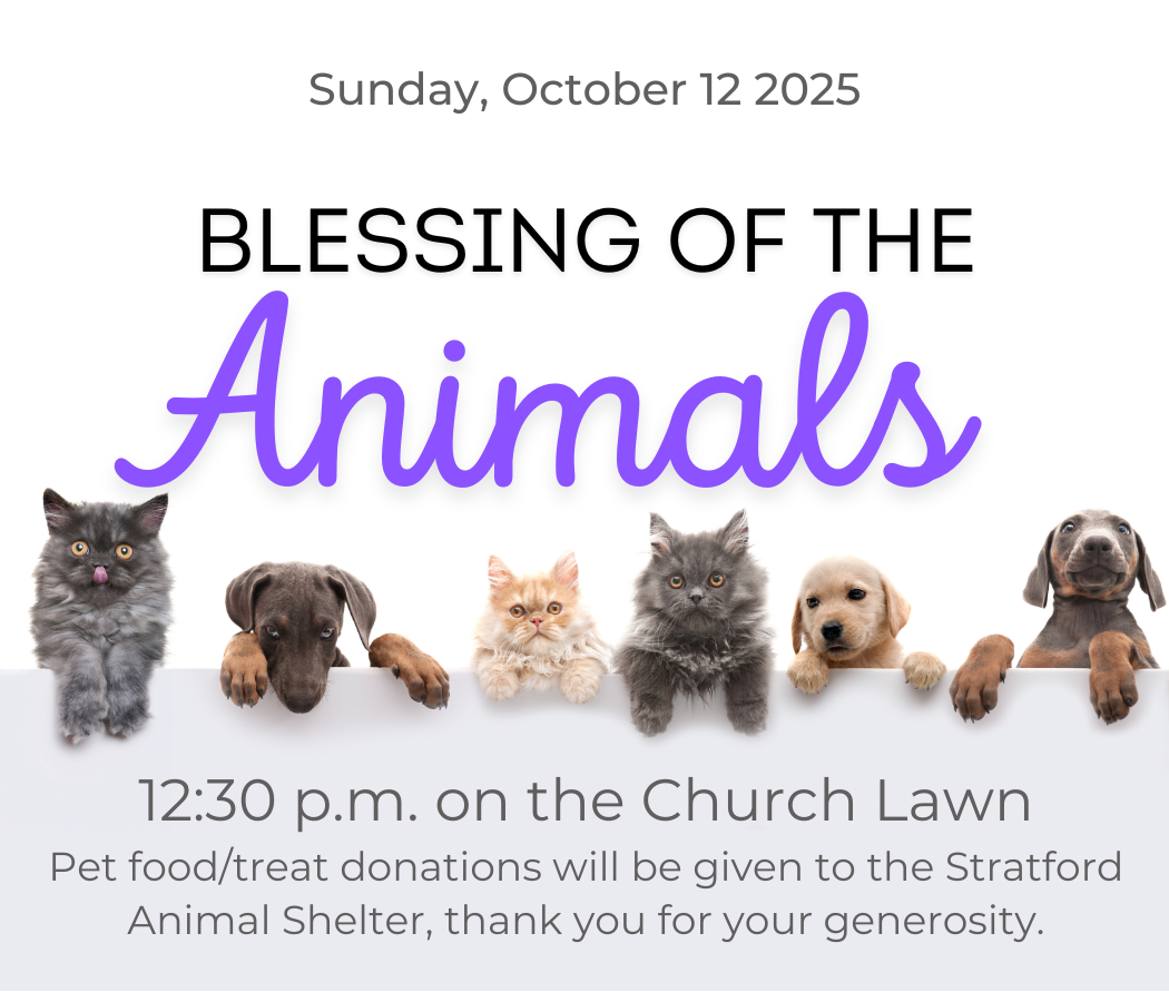 Blessing of the Animals, Sunday October 12, 12:30 p.m.